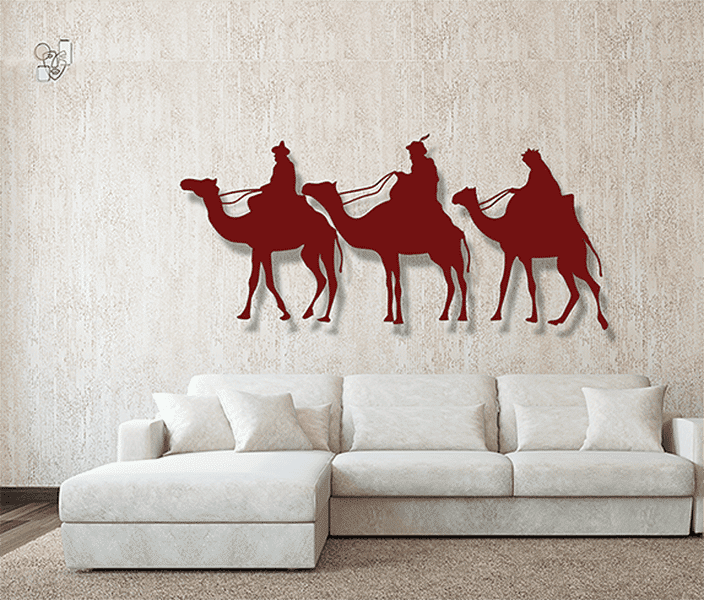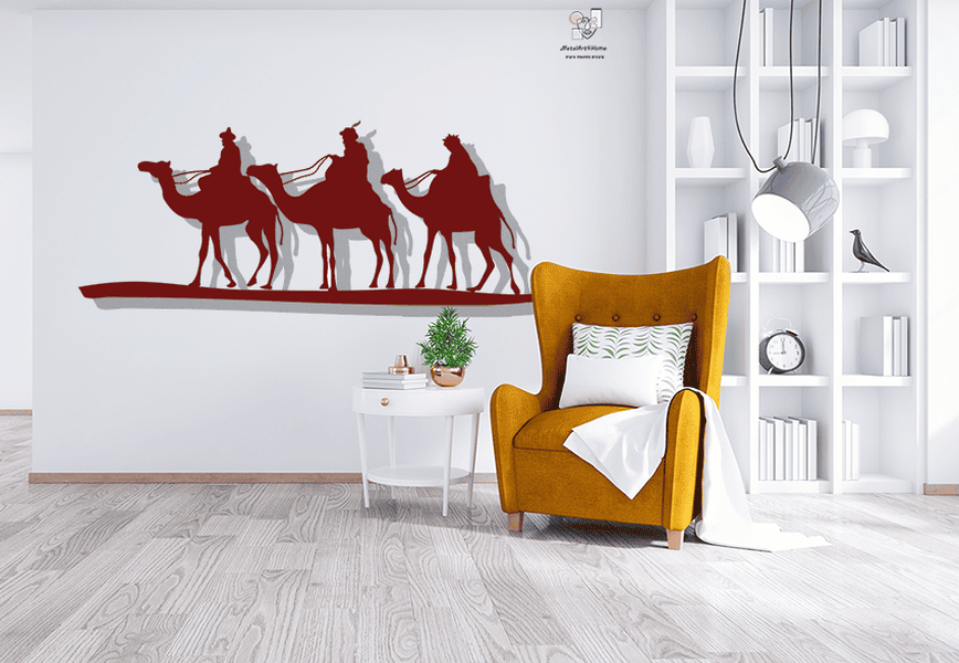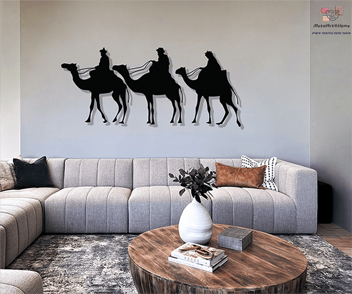 תמונת מתכת-שלושה גמלים במדבר, עיצוב אבסטרקטי  מ MetalArt4Home.co.il
